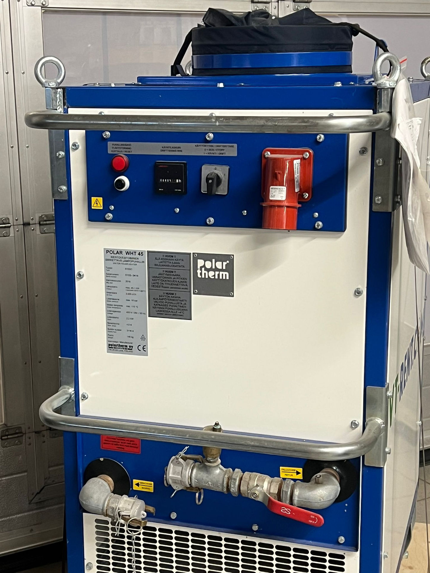 Vesikiertoinen lämmitin, joka tuottaa tasaista lämpöä esimerkiksi halleihin, työmaakohteisiin ja muihin isoihin tiloihin. Liitetään lämpöä tuottavaan keskusyksikköön (esim. lämpövaunu).